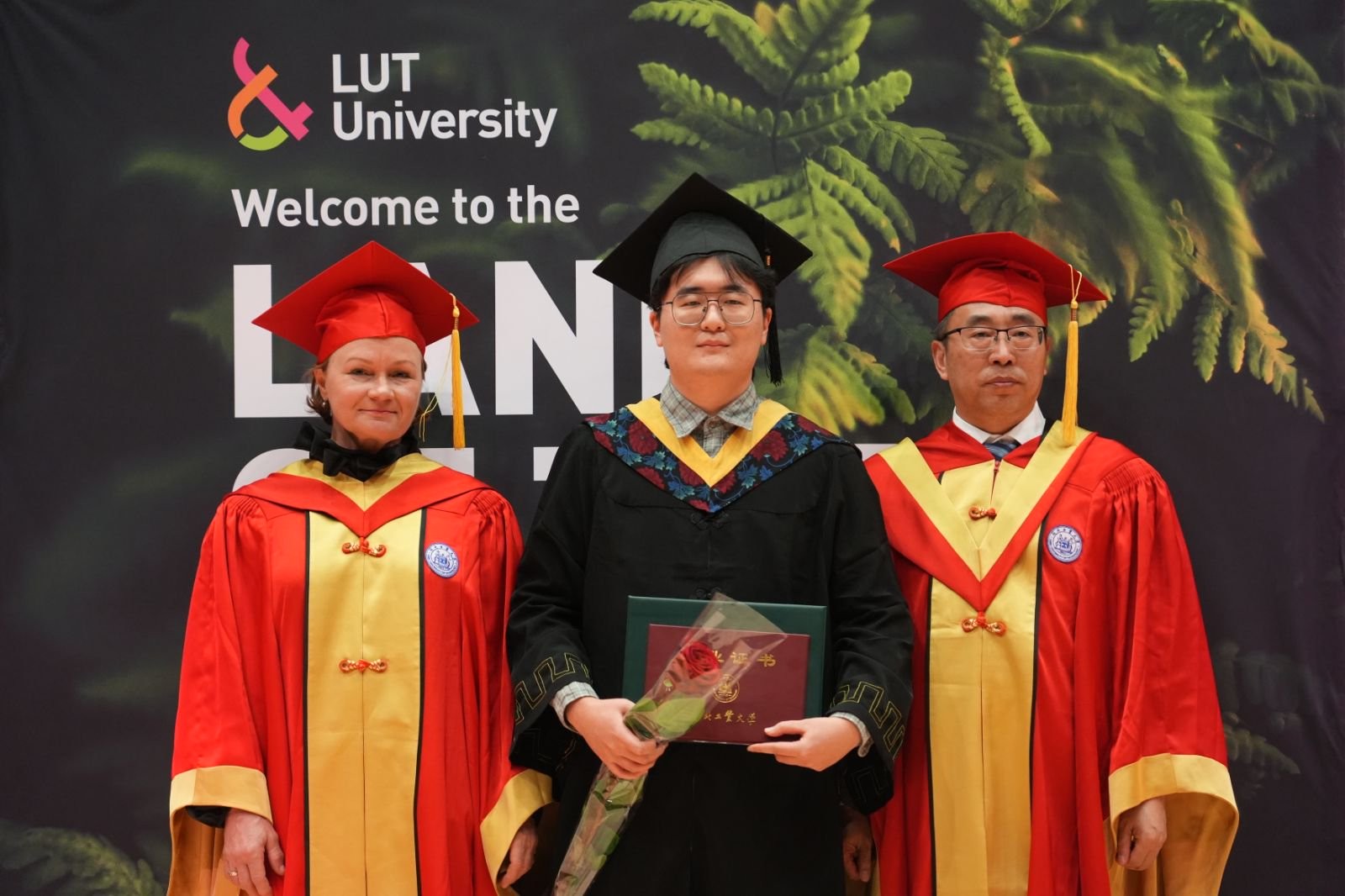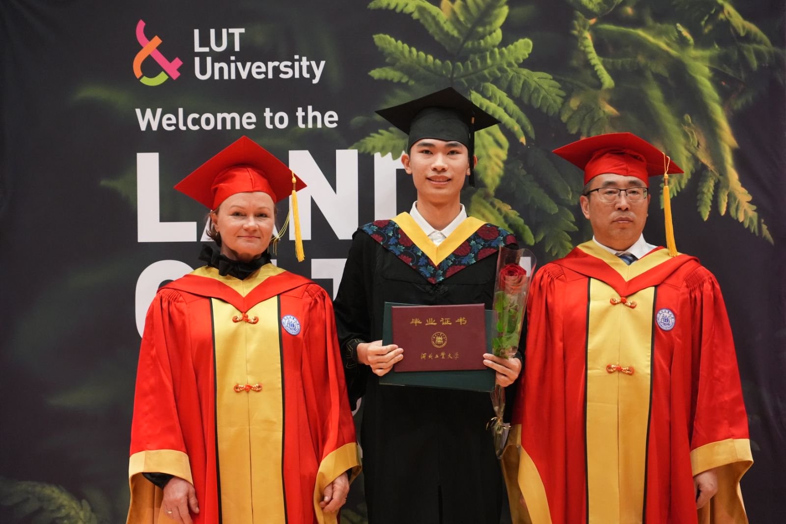 JAANASANDSTRÖM发表致辞。她高度评价了芬兰校区的办学成果,认为双方的合作模式在全球高等教育合作中具有重要的示范意义;特别赞扬了两校教职工在合作过程中展现出的开拓创新精神,并对他们为两校所作出的贡献表示衷心感谢。JAANA寄语毕业生,期望他们在未来的生活中始终保持好奇心与独立思考的科学精神,勇于探索、敢于创新,不盲从、不止步,勇敢走出属于自己的道路;能够将所学付诸实践,为推动人类福祉和全球可持续发展贡献智慧与力量;诚挚邀请毕业生加入LUT全球校友网络,继续与母校保持联系,无论身在何方,始终心系LUT,共同迎接更加美好的未来。