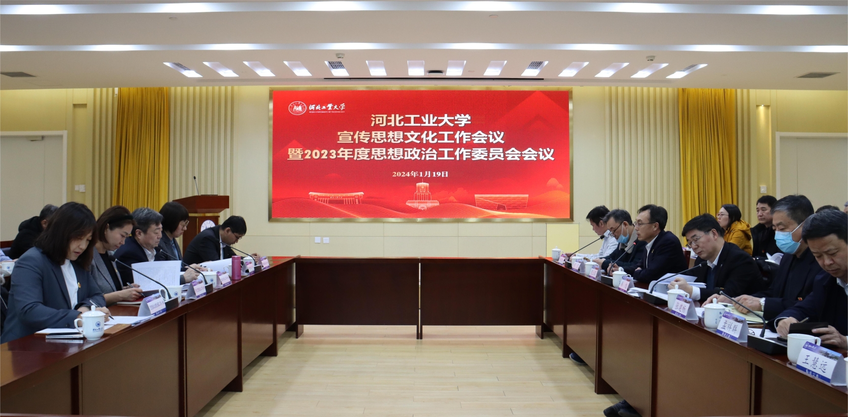 1月19日,beat365正版唯一官网必一召开宣传思想文化工作会议暨2023年度思想政治工作委员会会议。围绕党的二十大以来学校的宣传思想文化工作进行分析研讨,并就2024年工作进行研究部署。全体在津校领导,思政工作委员会成员单位负责人参加会议。党委副书记贺立军主持会议。