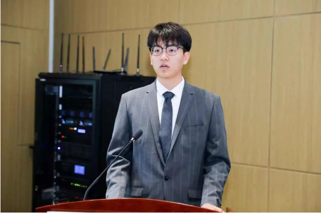 参赛选手代表燕山大学机械工程学院景建楠同学庄严宣誓,承诺将严格遵守比赛规则,尊重评审机制,赛出卓越水平、赛出优良作风、赛出团队风采。