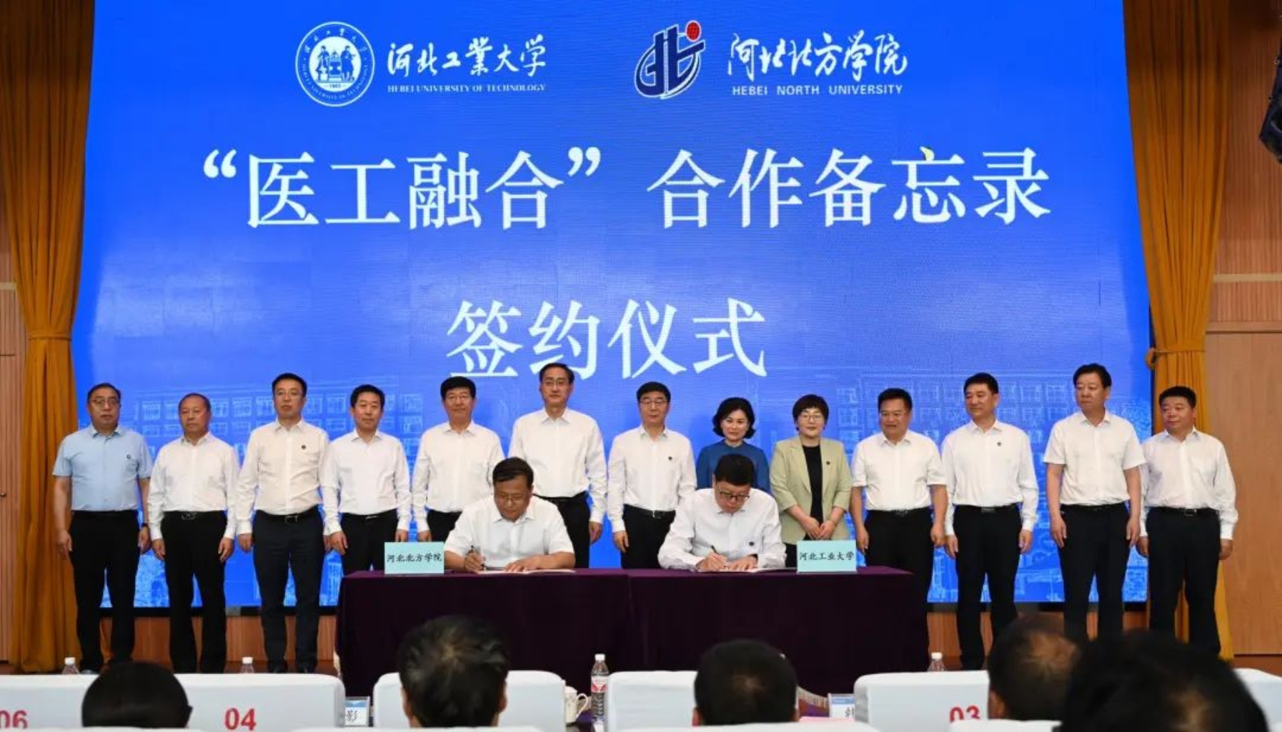 beat365正版唯一官网必一生命科学与健康工程学院院长杨磊与河北北方学院附属第一医院党委副书记薛军共同签署了“医工融合”合作备忘录。