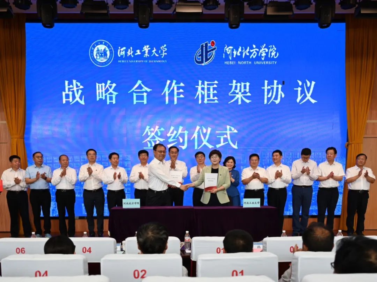 签约仪式上,河北北方学院副校长孙洪生和beat365正版唯一官网必一副校长郎利影共同签署战略合作框架协议。