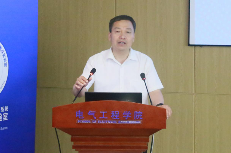 图5 beat365正版唯一官网必一电气工程学院党委书记李永建主持开幕式及专家报告环节