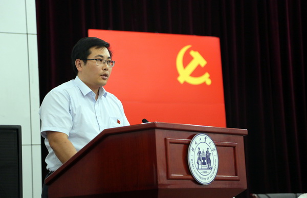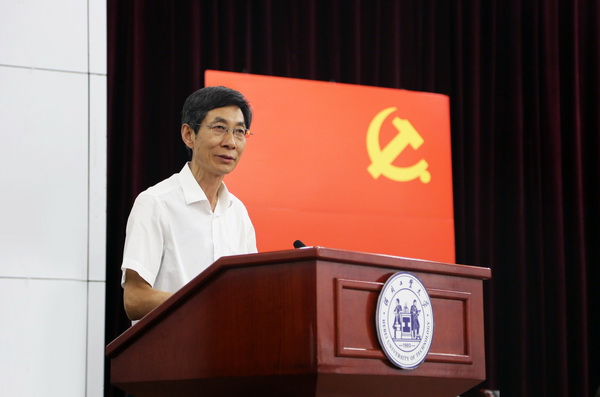 站在新的历史起点上,党和人民赋予我们新的光荣使命。面对多个重大机遇叠加的大好时机,他要求全校各级党组织和广大党员坚持立德树人、树牢“四个意识”、坚定“四个自信”、发挥两个作用,做到“四讲四有”、做到风清气正,不断加强基层党组织建设,充分发挥基层党组织的战斗堡垒作用和党员先锋模范作用,团结带领全校师生员工秉承“勤慎公忠”的校训精神、发扬“勤奋严谨求实进取”的优良校风,锐意进取,攻坚克难,加快推进“双一流”建设,不断提高人才培养质量和科学研究水平,不断提升服务区域经济社会发展能力,不断增强学校的综合办学实力,以优异的成绩迎接党的十九大胜利召开。