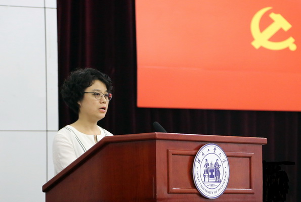 优秀党务工作者代表机械工程学院党务干事王媛媛发言