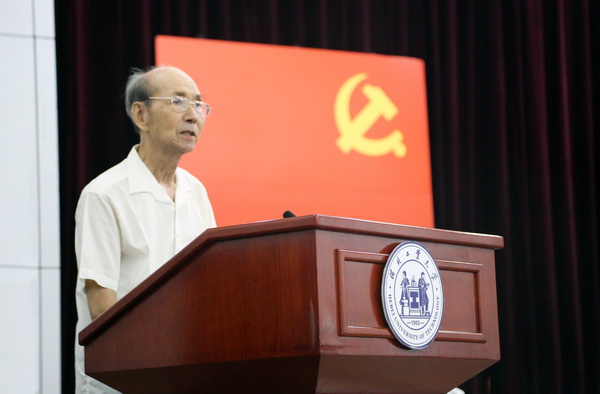 优秀共产党员代表82岁的离退休党委唐承业发言