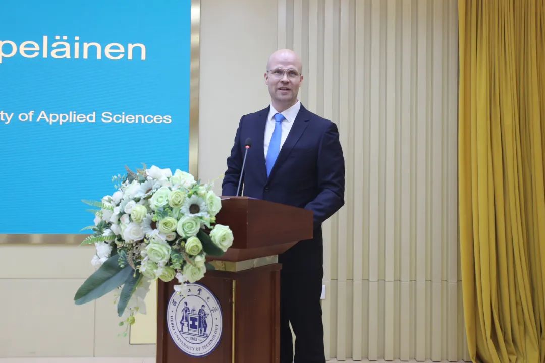 芬兰拉彭兰塔市董事会主席约纳斯·赫尔曼尼·格伦隆德(Joonas Hermanni Grönlund)先生在致辞中从拉彭兰塔城市建设、教育历史与LUT大学发展历程出发,回顾了芬兰教育体系的发展脉络,并展望了两校未来在多领域的合作,通过优势互补、资源共享,双方必将打造中芬高等教育合作的新典范,为应对全球性挑战贡献智慧与力量。