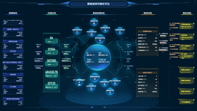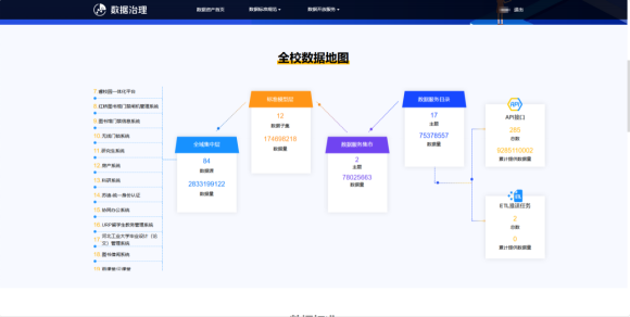 加快校内数据资源治理。以国家标准和行业标准为基础,全面梳理学校数据资产,设计编制“beat365正版唯一官网必一校园数据标准”,支撑全域数据治理和系统建设。构建校级数据中心,对校内各类数据及时进行采集、汇聚、分析、转换、清洗等,强化数据治理闭环。数据中心对接部门16个,整合业务系统37个,对接数据源84个,对接数据量48亿余条。构建标准模型层,形成校级统一数据服务底座。