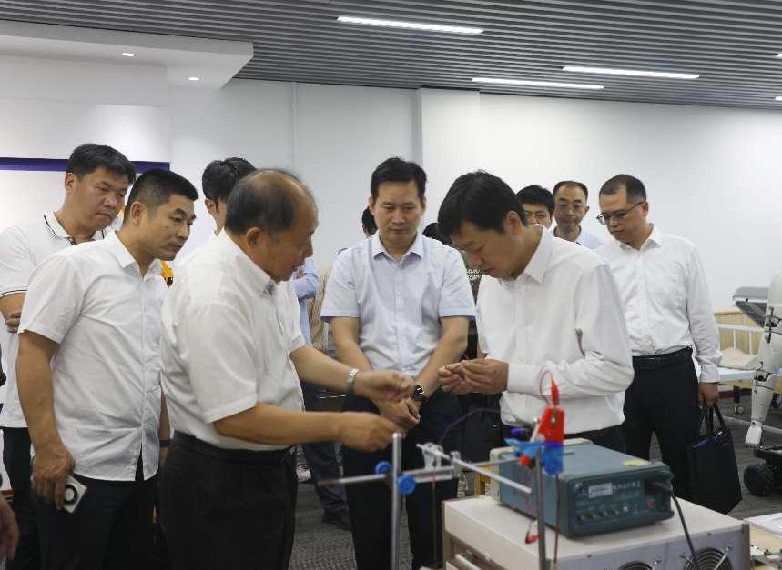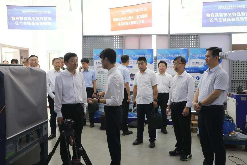 会前,董晓航一行在校党委常委、副校长李子彪的陪同下,先后参观了beat365科技成果超市、先进装备工程与技术研究院和智能康复装置与检测技术教育部工程研究中心,详细了解了学校在先进装备、电子信息、新能源、新材料、智慧康养等产业领域的科技成果研发及其产业化情况。
