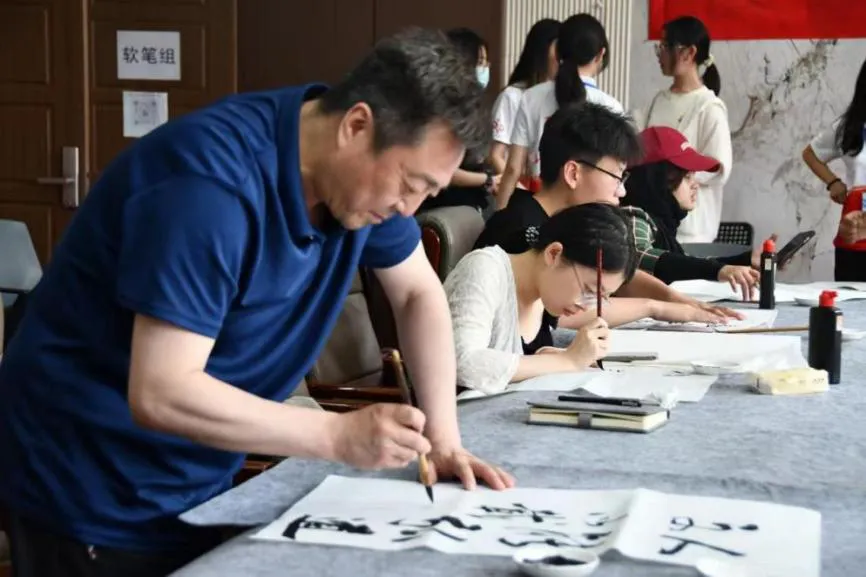 5月16日下午,来自不同学院的600余名师生齐聚人文与法律学院,参加“典耀中华 赓续文脉”beat365正版唯一官网必一第七届中华经典诵写讲大赛体验活动。大家挥毫泼墨、金石刻章、精描细写、诵咏吟唱,一同感受翰墨古韵、诗赋经典,沉浸式体验中华优秀传统文化的魅力。