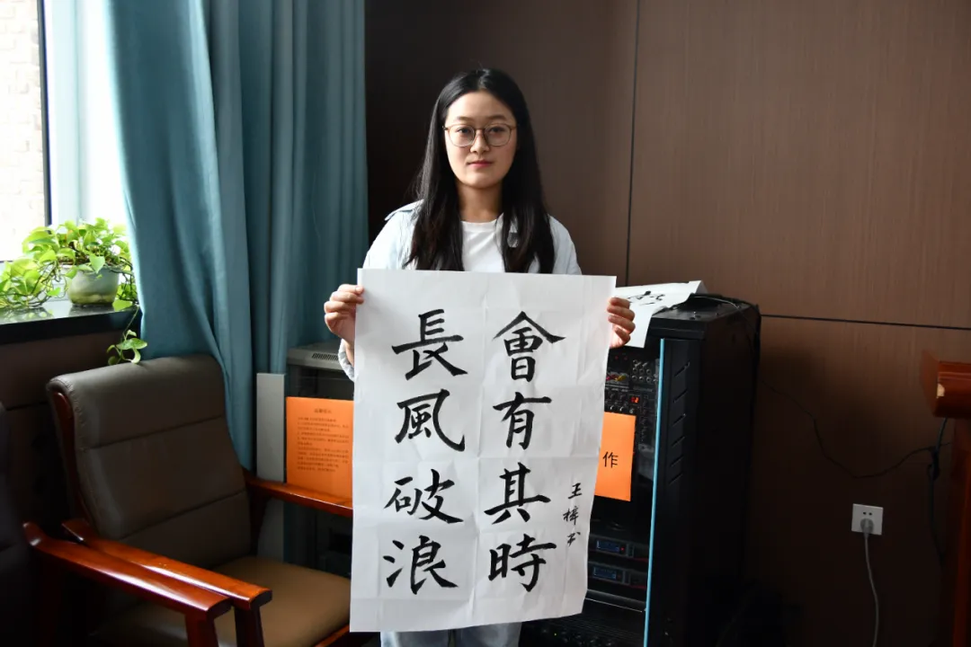 文法学院的王梓同学:“此次中华经典诵写讲大赛体验活动为我们提供了书写软笔、硬笔书法的场地,让大家能够和志同道合的同学们一起用手中的笔表达内心对于中华优秀传统文化的热爱。交流书法的心得,让我们在课堂学习之余感受中华优秀传统文化的滋养。我希望这样的活动能够长期举办下去,已经开始期待下一次的活动啦!”