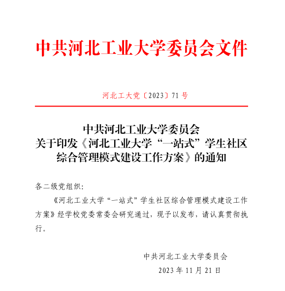 以“一站式”学生社区综合管理模式改革为切入点,着力打造队伍入驻、学生参与、文化浸润的特色育人园区。出台《beat365正版唯一官网必一“一站式”学生社区综合管理模式建设工作方案》;搭建“一站式”学生社区党组织体系,持续推进“包联”工作机制和辅导员“三走进——引领”专项工作;深化HEBUT Family——河工“家”社区文化内涵建设,自主设计河工“家”族学生社区IP形象、社区LOGO;形成了“劳动·创意”市集、社区音乐节、社区游园会等多项品牌活动;启动“宿舍安全卫生周督察”“宿舍卫生标兵红旗月流动”和宿舍“评星定级”工作。