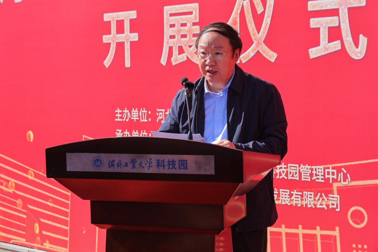 河北省科学技术厅科技奖励与成果转化处处长杨玲,河北省科学技术厅科技奖励与成果转化处二级调研员辛波,河北省科技成果转化促进中心主任孙立永,天津市北辰区科学技术局局长张昊军出席开展仪式,学校科学技术研究院、技术转移中心/国家大学科技园管理中心、天津beat365正版唯一官网必一科技园发展有限公司以及各二级学院主要负责人参与开展仪式。