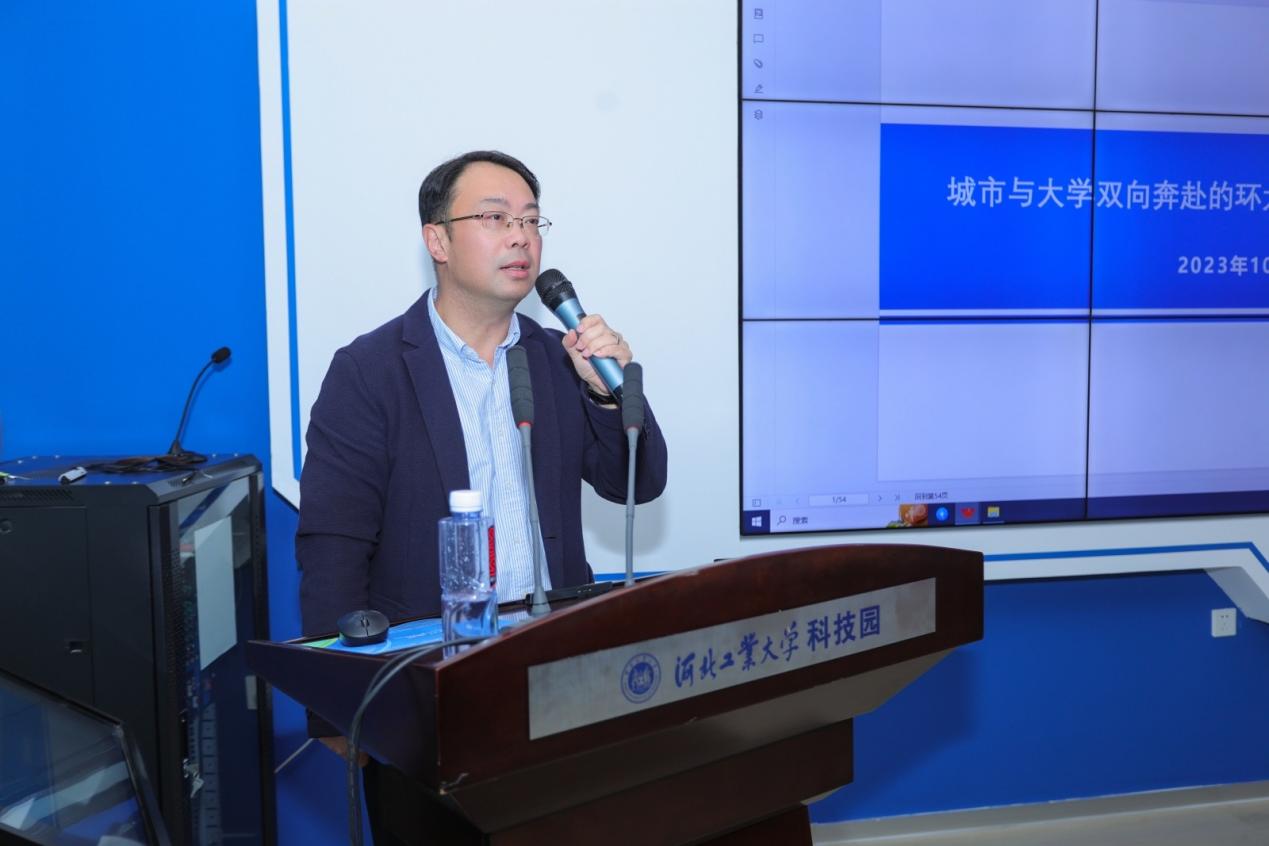 贾宏伟介绍,近年来,天津市北辰区大力实施科技创新赋能工程,深化与区内高校院所合作,河北工大积极践行“京津研发,河北制造”的产业协作模式,围绕京津冀协同发展国家战略和天津“制造业立市”战略部署布局科技研发和成果转化平台,与河北工大共建了“北辰科技成果超市”“北辰智能装备研究院”等创新平台机构,通过优势集群与协同创新,促进技术、数据、产业及各类要素合理流动和高效集聚,培育转化了一批高水平、标志性的科研成果。贾宏伟表示,北辰区将一如既往为大学做好各项服务工作。希望河北工大发挥使命担当,与北辰区共同抢抓京津冀协同发展重大机遇,推进高水平的政、产、学、研、金协同联动,为政府和园区的“企业服务”赋能,为域内企业提供工业诊断、需求挖掘、科技攻关、人才培养等“一站式”服务,助力区域产业高质量发展。