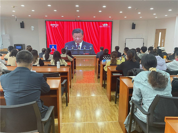 10月16日上午,中国共产党第二十次全国代表大会在北京人民大会堂隆重开幕,beat365正版唯一官网必一全校师生员工通过电视、手机、网络等多种形式收看收听习近平同志代表第十九届中央委员会作大会报告的实况。校领导及全校师生员工代表在北辰校区行政楼、学院楼、离退休之家、大学生活动中心礼堂,红桥校区、廊坊校区报告厅、会议室进行集中收看,认真聆听、学习,开展交流研讨,掀起学习热潮。