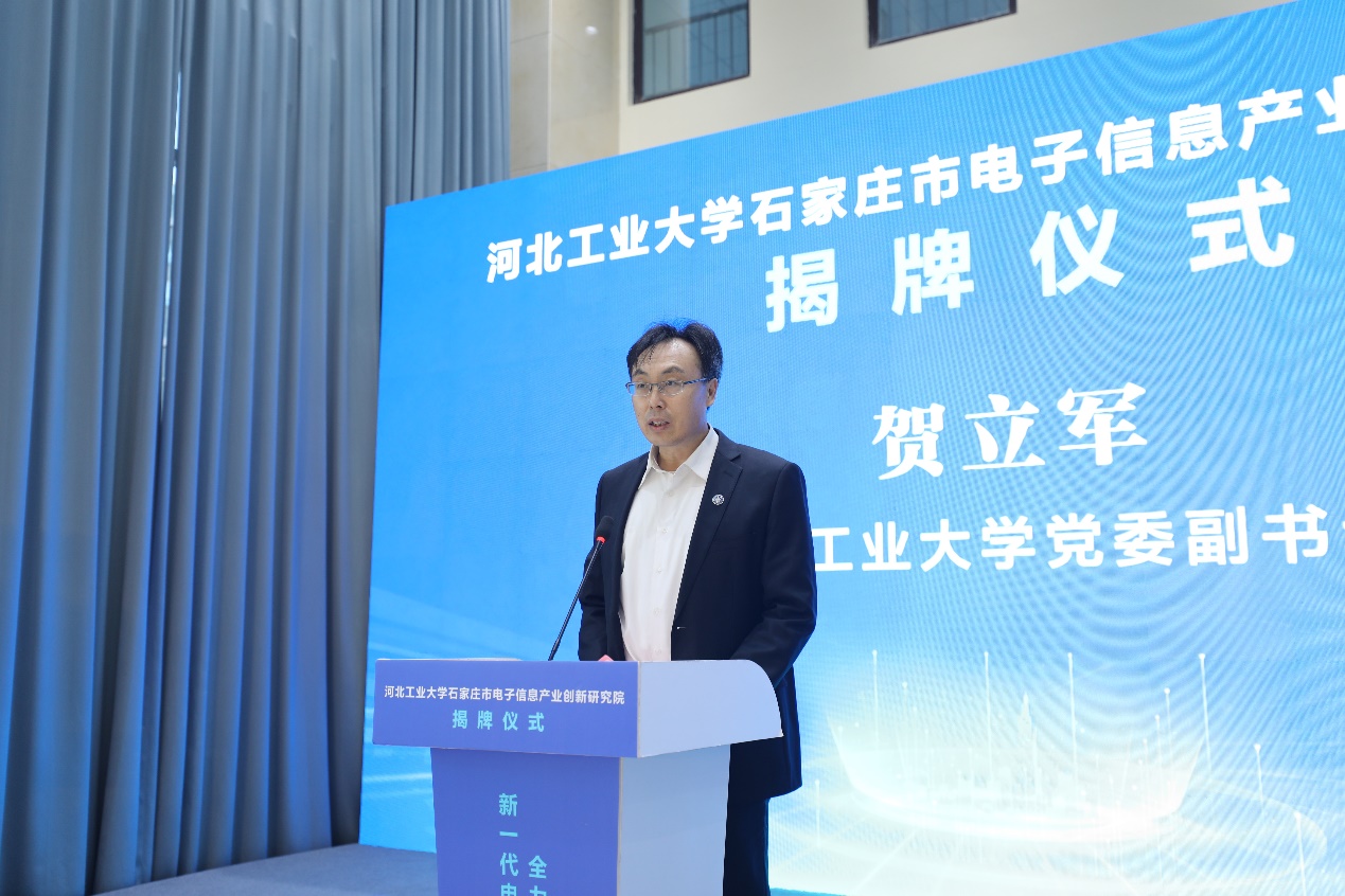 校党委副书记贺立军代表学校向石家庄市和鹿泉区对学校的信任和创新研究院成立过程中给予的帮助与支持表示衷心感谢。他表示,创新研究院是beat365正版唯一官网必一与石家庄市人民政府、鹿泉区人民政府为贯彻实施创新驱动发展战略,围绕区域产业特色,服务地方经济发展需求,探索新型合作路径的科技创新平台。beat365正版唯一官网必一倡议发起成立“河北省电子信息产业联盟”,在河北省相关政府职能部门和群团组织支持和指导下,邀请京津冀行业重点企业、科研院所以及高校参与,共同助力打造河北省新一代电子信息产业集群,实现“政产学研用”多方高水平融合协同,推动中国式现代化在河北展现出美好图景。