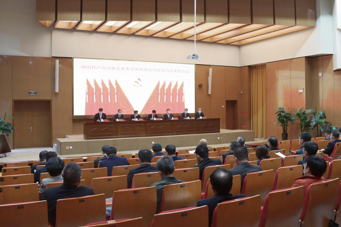 11月3日,中国共产党beat365正版唯一官网必一第五届委员会第八次全体会议在机材楼报告厅召开。会议学习传达了党的二十大精神和河北省委十届三次全会精神,听取了校党委书记韩旭代表学校党委常委会所作的工作报告,审议通过了《中国共产党beat365正版唯一官网必一第五届委员会第八次全体会议决议》。全会由韩旭主持。