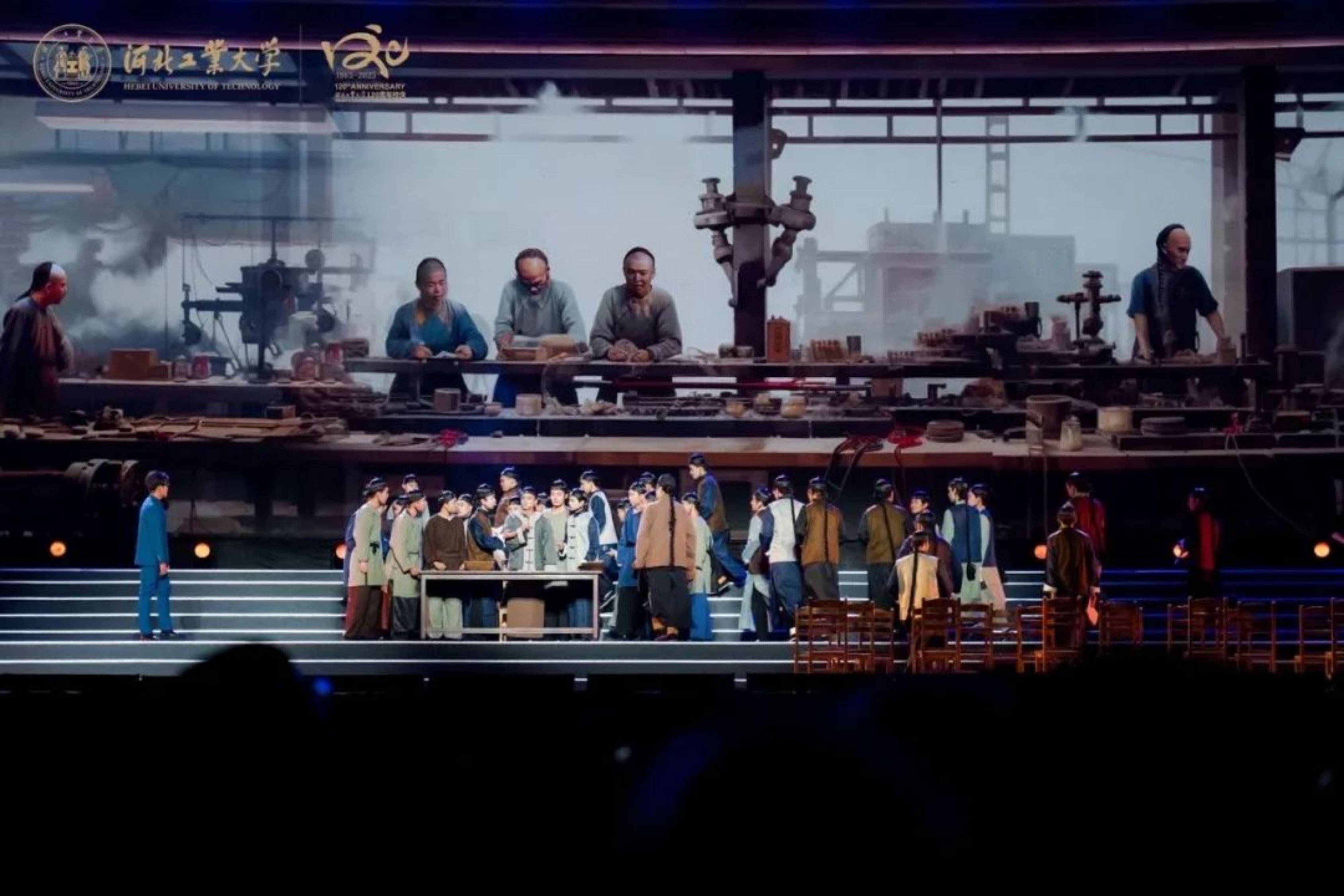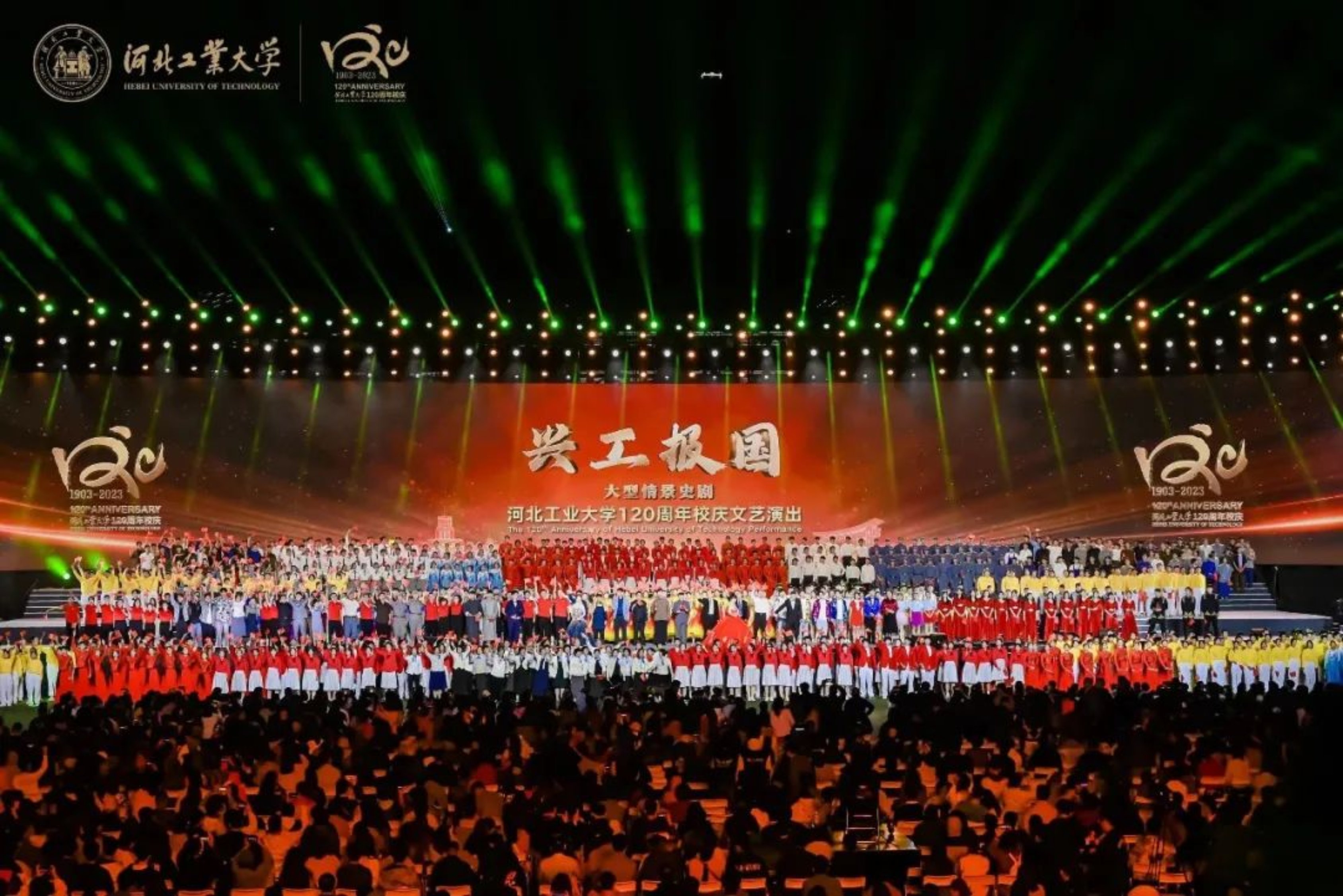 10月15日19:03,beat365正版唯一官网必一120周年校庆文艺演出——《兴工报国》大型情景史剧在学校体育中心震撼上演。近千名演员利用时空对话的形式,穿插情景表演、情景歌舞,分别从《序·百廿荣光》《根·家国在心》《魂·救国有我》《梦·兴国志远》《情·强国有声》《尾声·逐光前行》六幕再现历史情景,生动展现beat365正版唯一官网必一建校120周年的厚重历史和文化积淀。