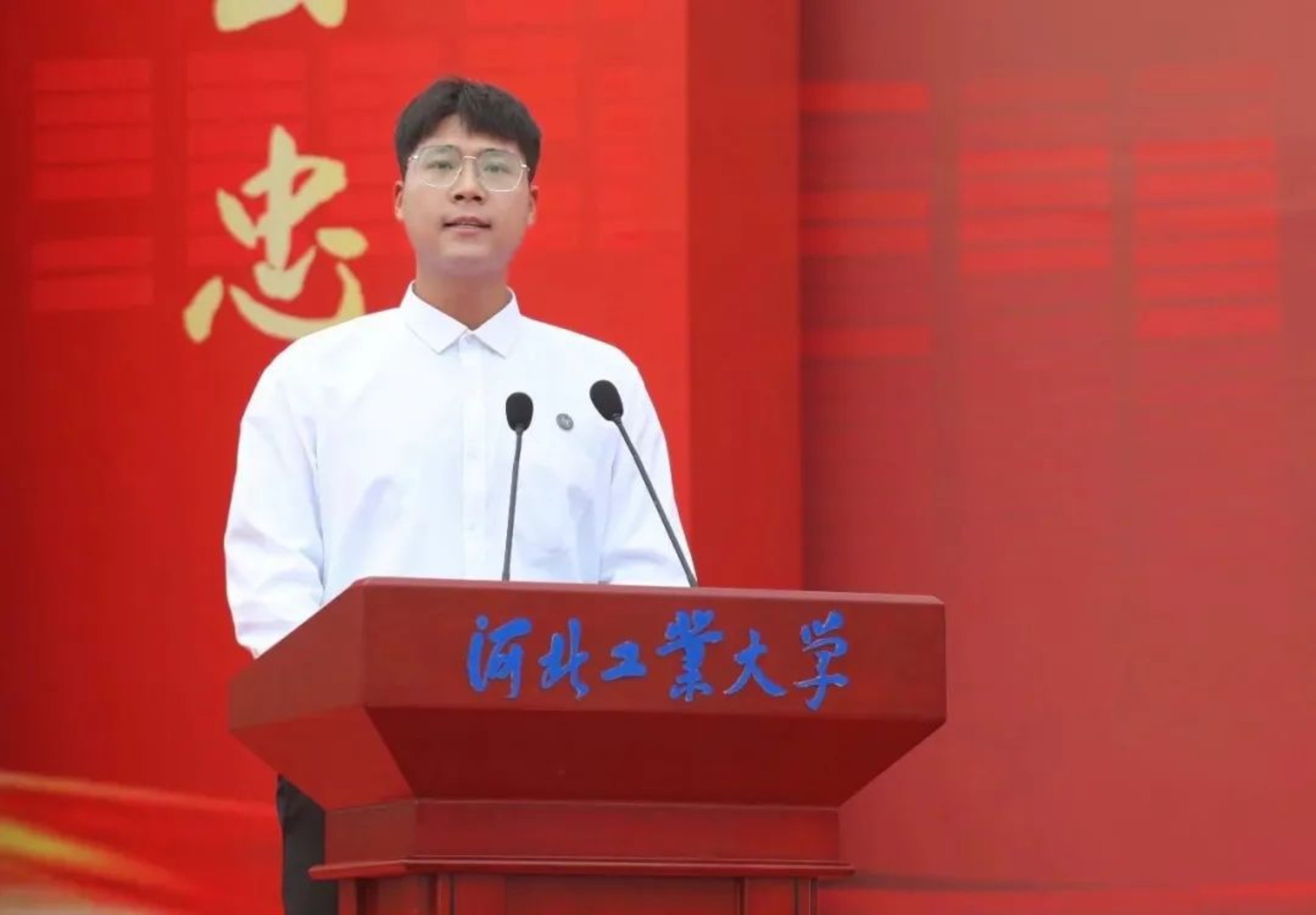 在校生代表、校学生会主席李泽阳同学代表两万多名在校生向2023级新生表示热烈的欢迎和美好的祝愿。他期待学弟学妹们能够在工大不负青春韶华,不负时代重托,不负师长和母校辛勤培育,努力成为中华民族伟大复兴的先锋力量。
