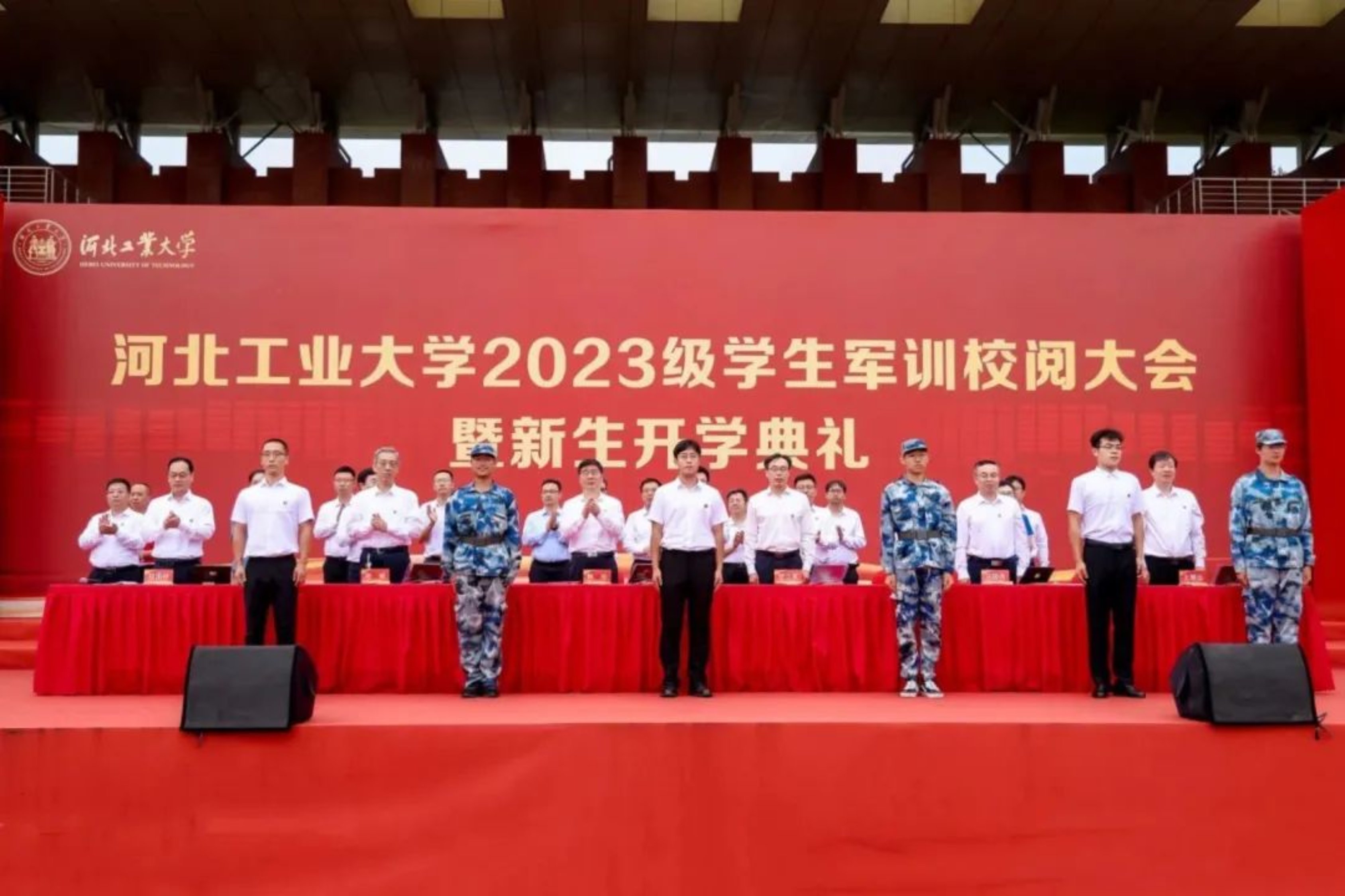 擦亮青春底色,厚植家国情怀,担当时代使命。9月10日,beat365正版唯一官网必一2023级军训校阅大会暨新生开学典礼举行。校领导韩旭、贺立军、赵斌、马国伟、王慧远,石药控股集团有限公司副总裁、化工工艺专业94级校友代表刘树林出席北辰、红桥会场典礼,学校相关职能部门和各学院负责同志参加典礼。来自五湖四海的博士研究生、硕士研究生和本科生新生在双会场共赴典礼。典礼由校党委常委、副校长段国林主持。