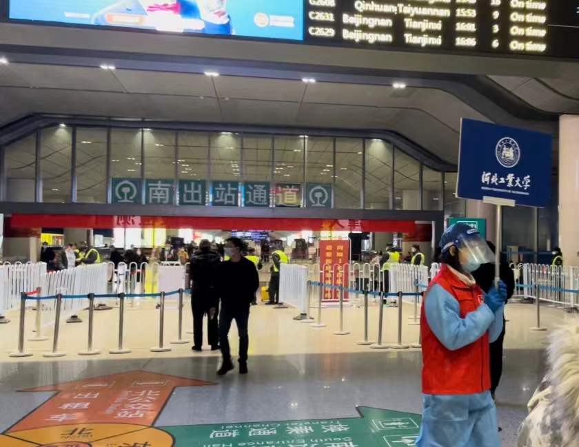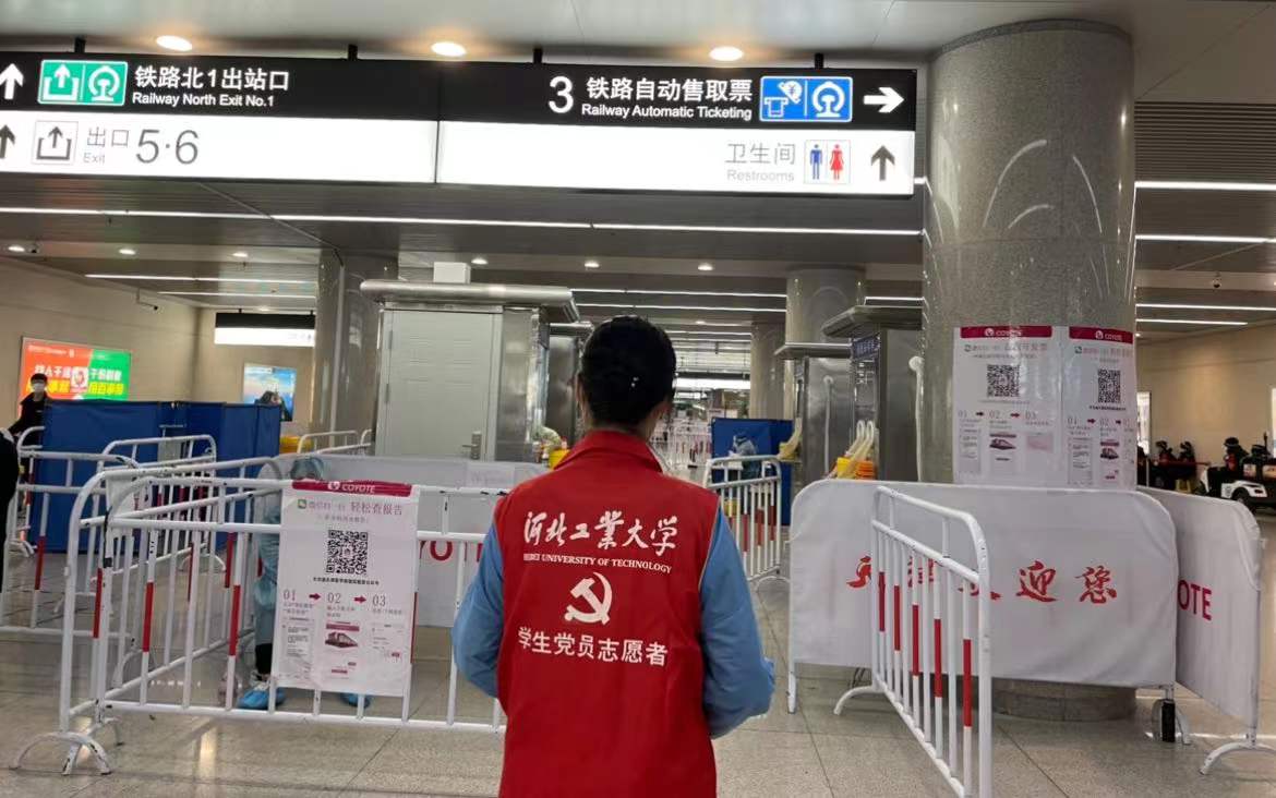 温馨提示:同学们出站后请主动寻找接站点位负责老师(身着红色河北工大背心,手举蓝色接站牌)。