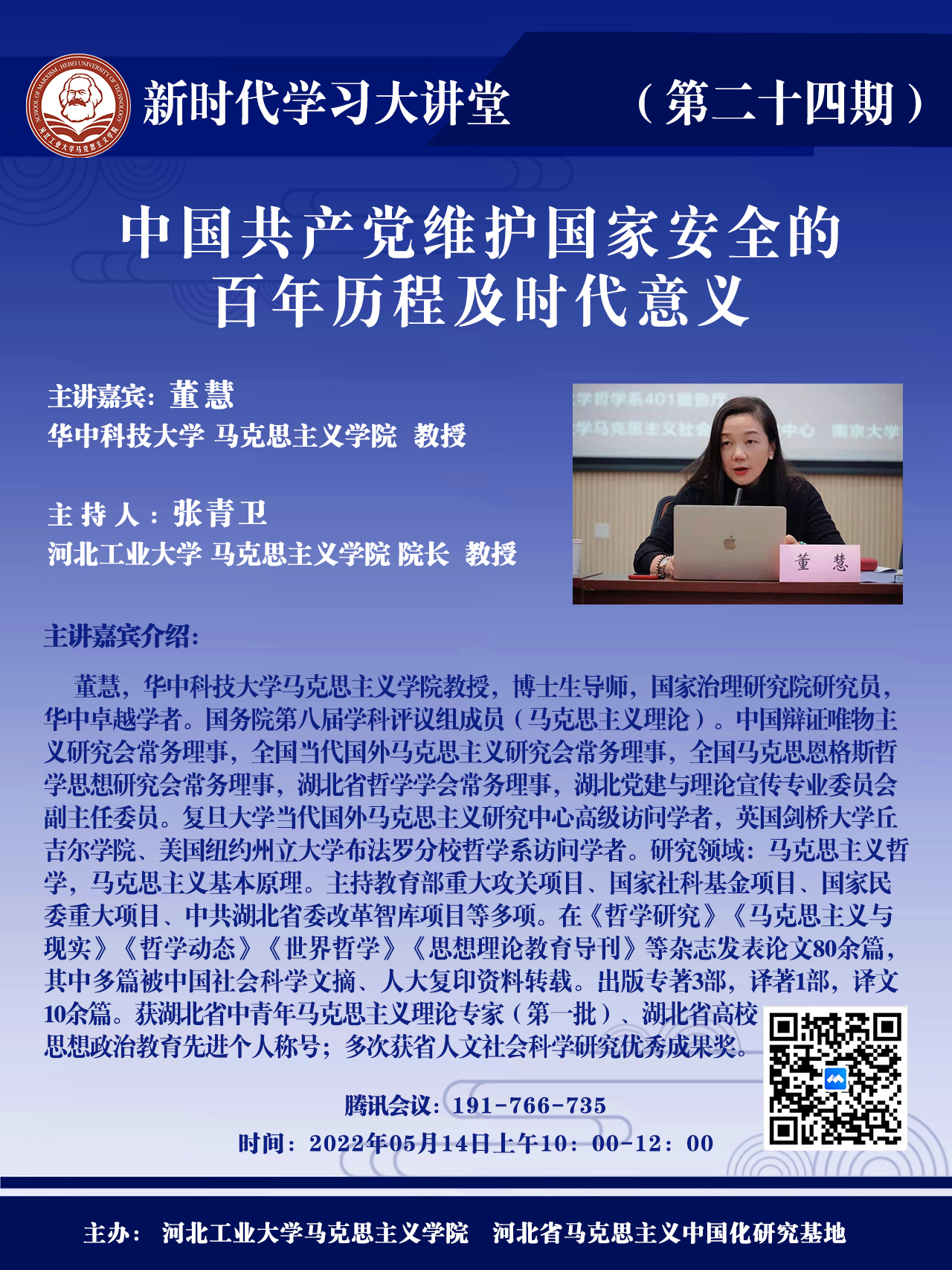 讲座题目:中国共产党维护国家安全的百年历程及时代意义