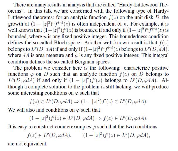 报告题目HARDY-LITTLEWOOD THEOREMS FOR BERGMAN SPACES