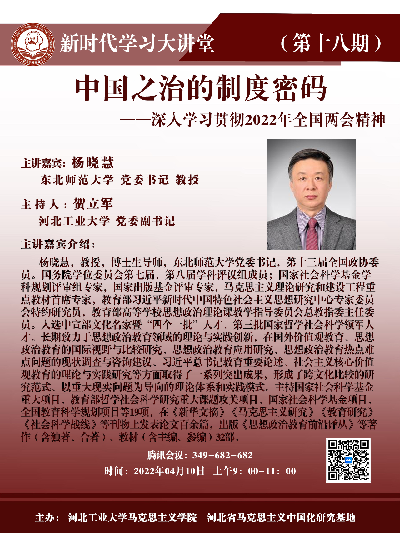 讲座题目:中国之治的制度密码——深入学习贯彻2022年全国两会精神
