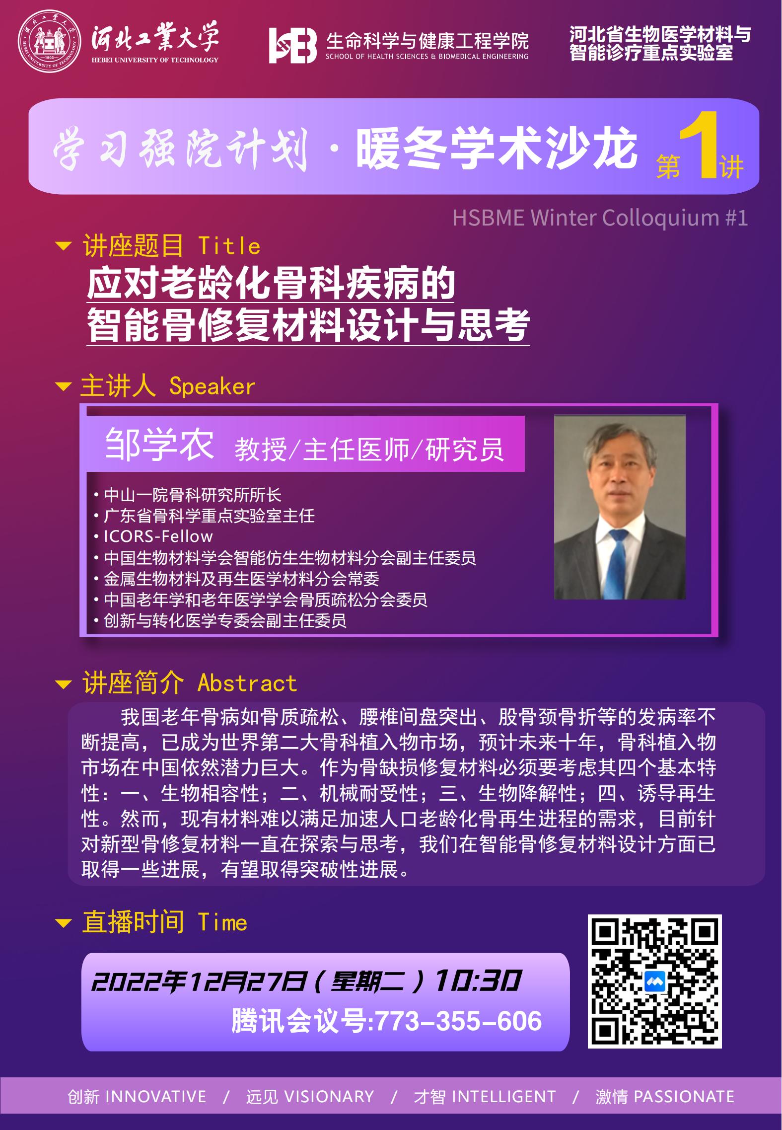 学术报告【暖冬学术沙龙(第一讲)】:应对老龄化骨科疾病的智能骨修复材料设计与思考