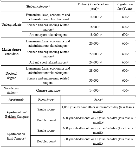 First-class scholarship: free tuition, living expense 2000RMB per month (10 months)
